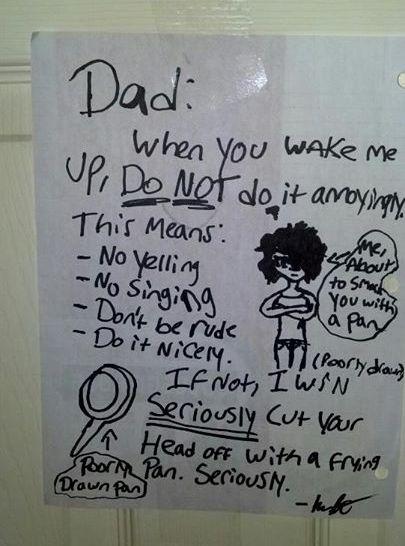 Kid Leaves Terrifying Note For Dad Demanding to Be Woke Up Nicely