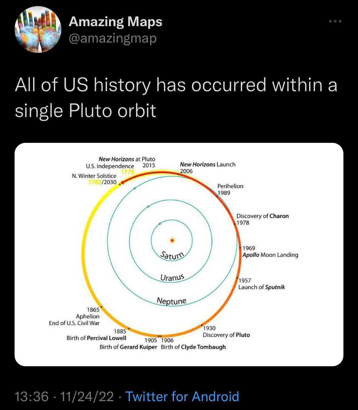 All of US history has occurred within a single Pluto orbit