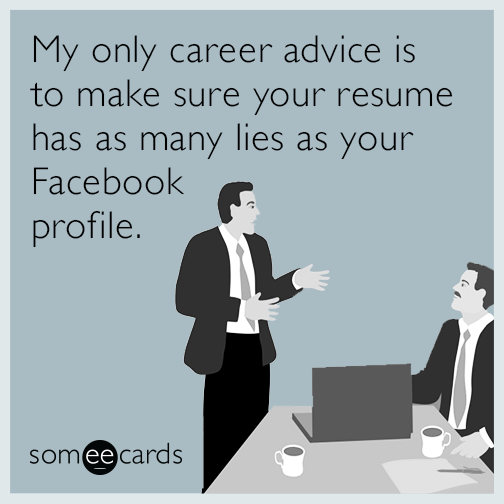 My only career advice is to make sure your resume has as many lies as your Facebook profile.