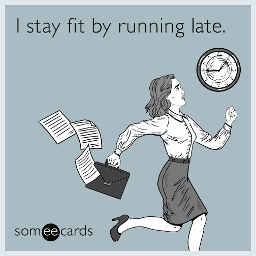 I stay fit by running late.