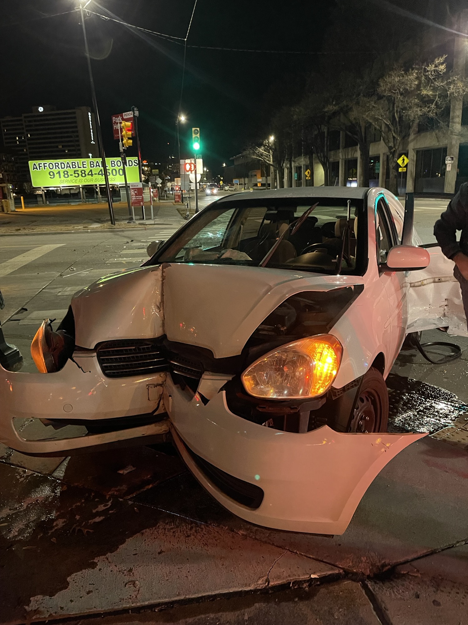 Wellthatsucks: Our Uber got T-boned by a driver who ran a red light and sped off. The car got turned into a fortune cookie.