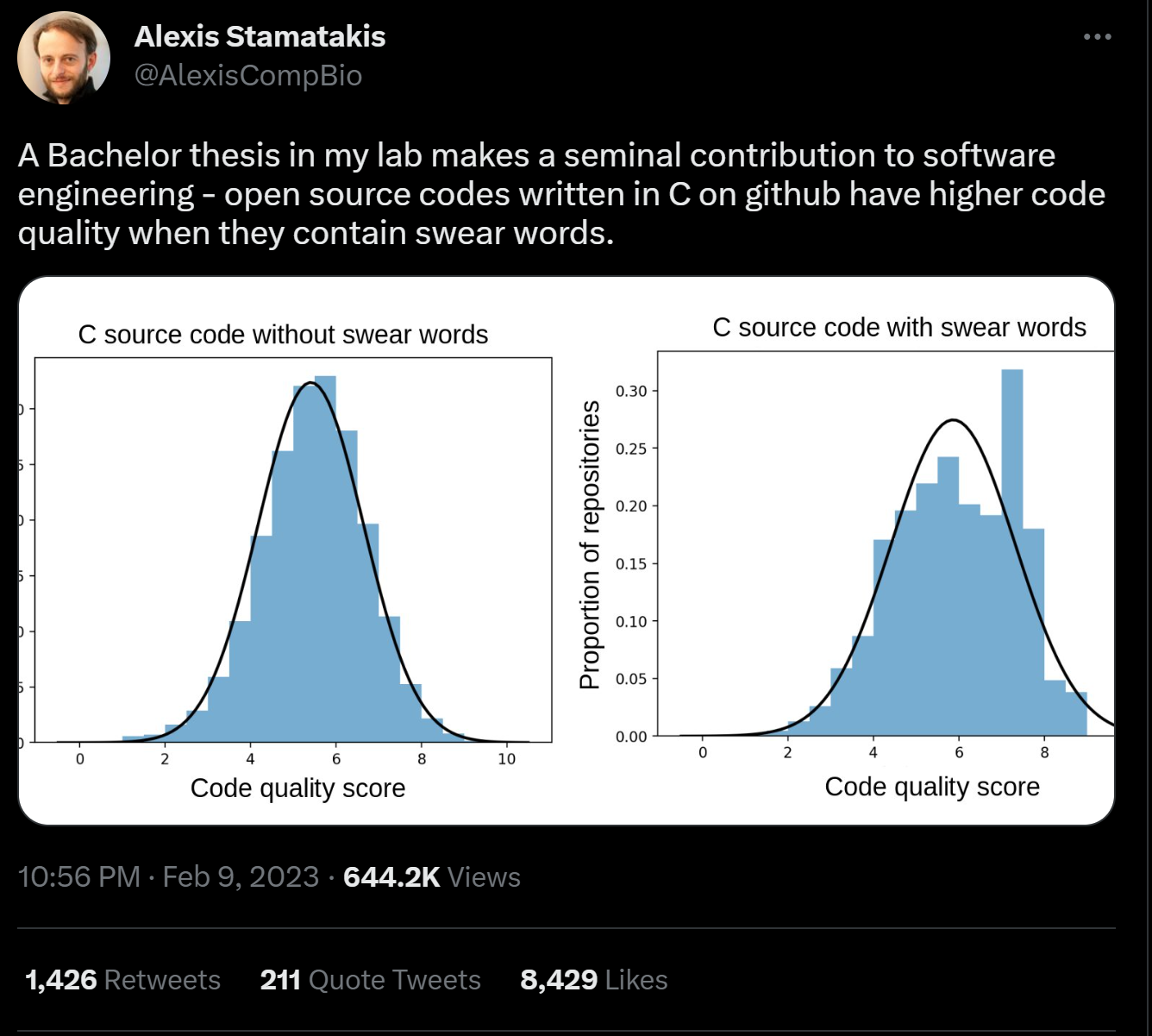 ProgrammerHumor: C code has higher code quality when it contains swear words