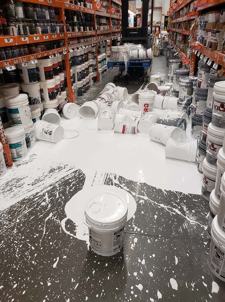 Wellthatsucks: Buckets of paint fell off a pallet being lifted by a forklift.
