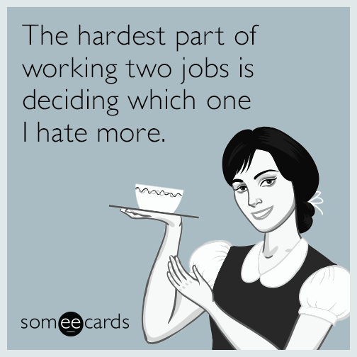 The hardest part of working two jobs is deciding which one I hate more.
