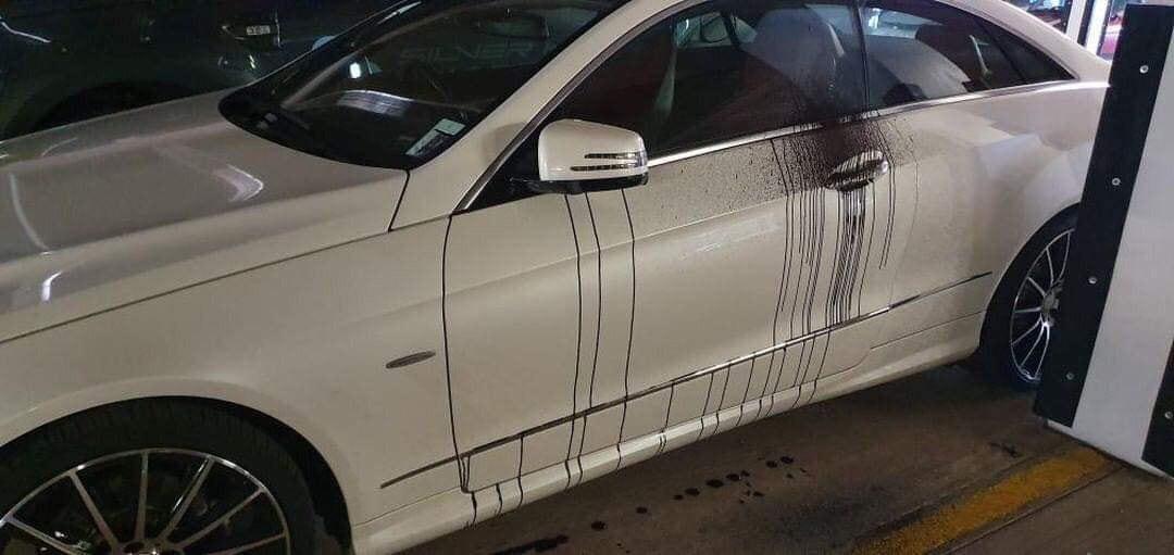 Wellthatsucks: Car after tarmac was being laid on the floor above in a car park