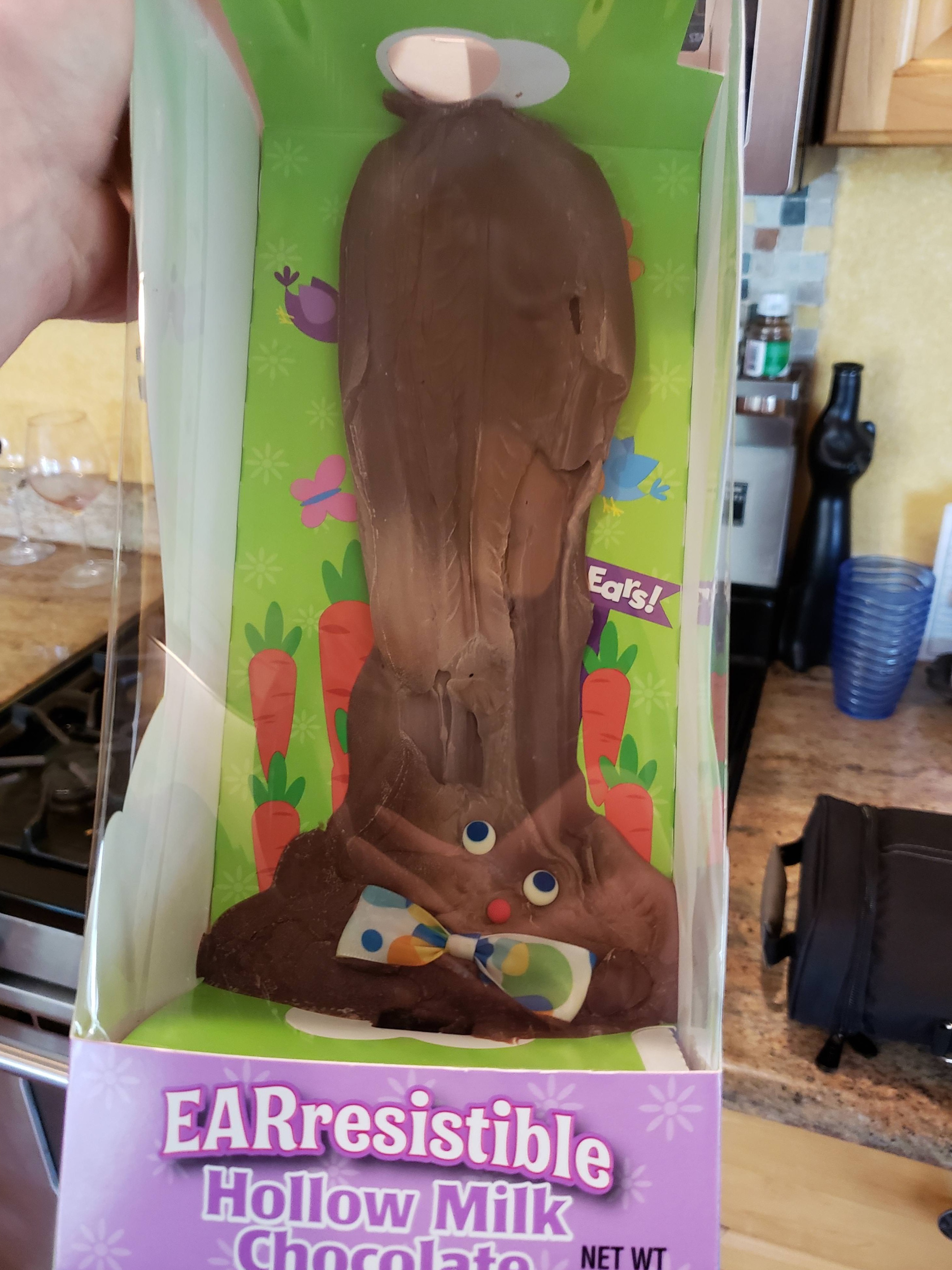 Wellthatsucks: Chocolate Easter bunny left in the car on a hot day.