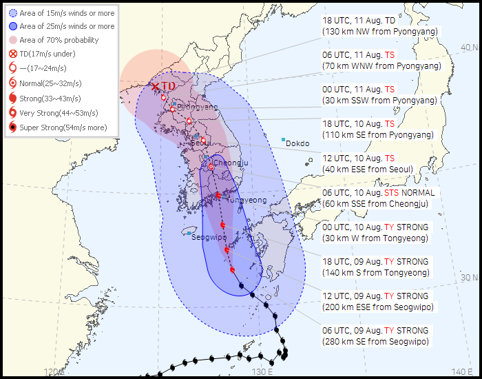 Wellthatsucks: I live in South Korea, and this is the predicted path of the typhoon that is currently approaching