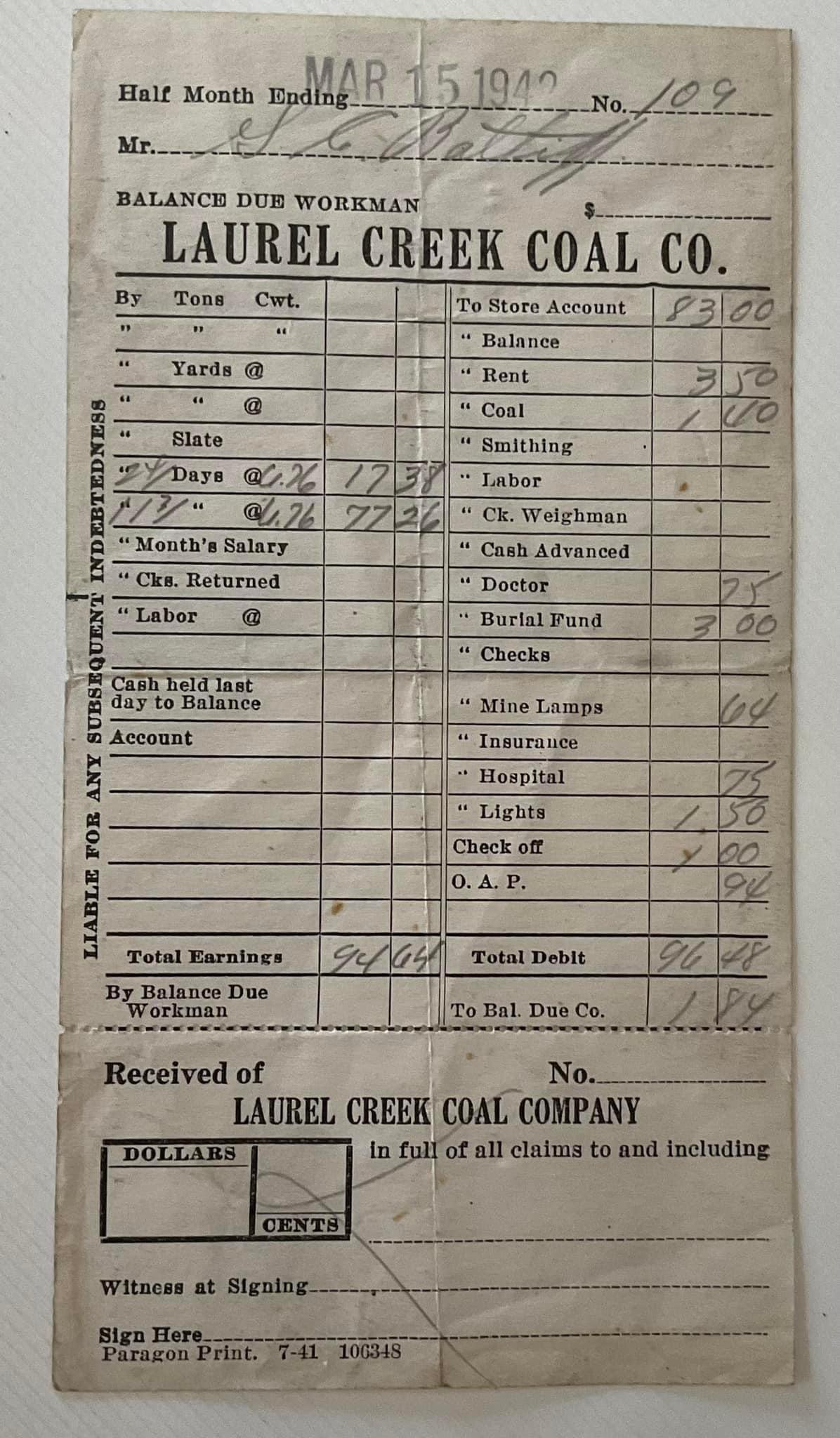 Wellthatsucks: Paystub from a coal miner in WV 1942. Ends up owing his employer $1.84 ($35.76 in 2023) at the end of the pay period. This is when miners were paid in company currency and lived in company houses and shopped at a company store.