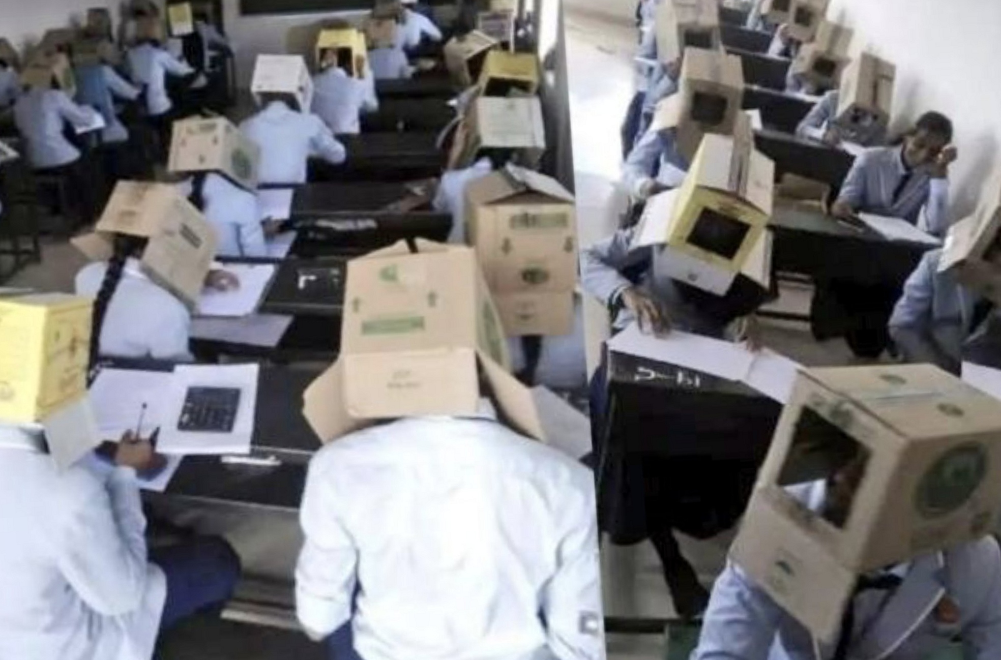 Wellthatsucks: Students in an Indian College have been forced to wear cardboard boxes during exam to prevent cheating.