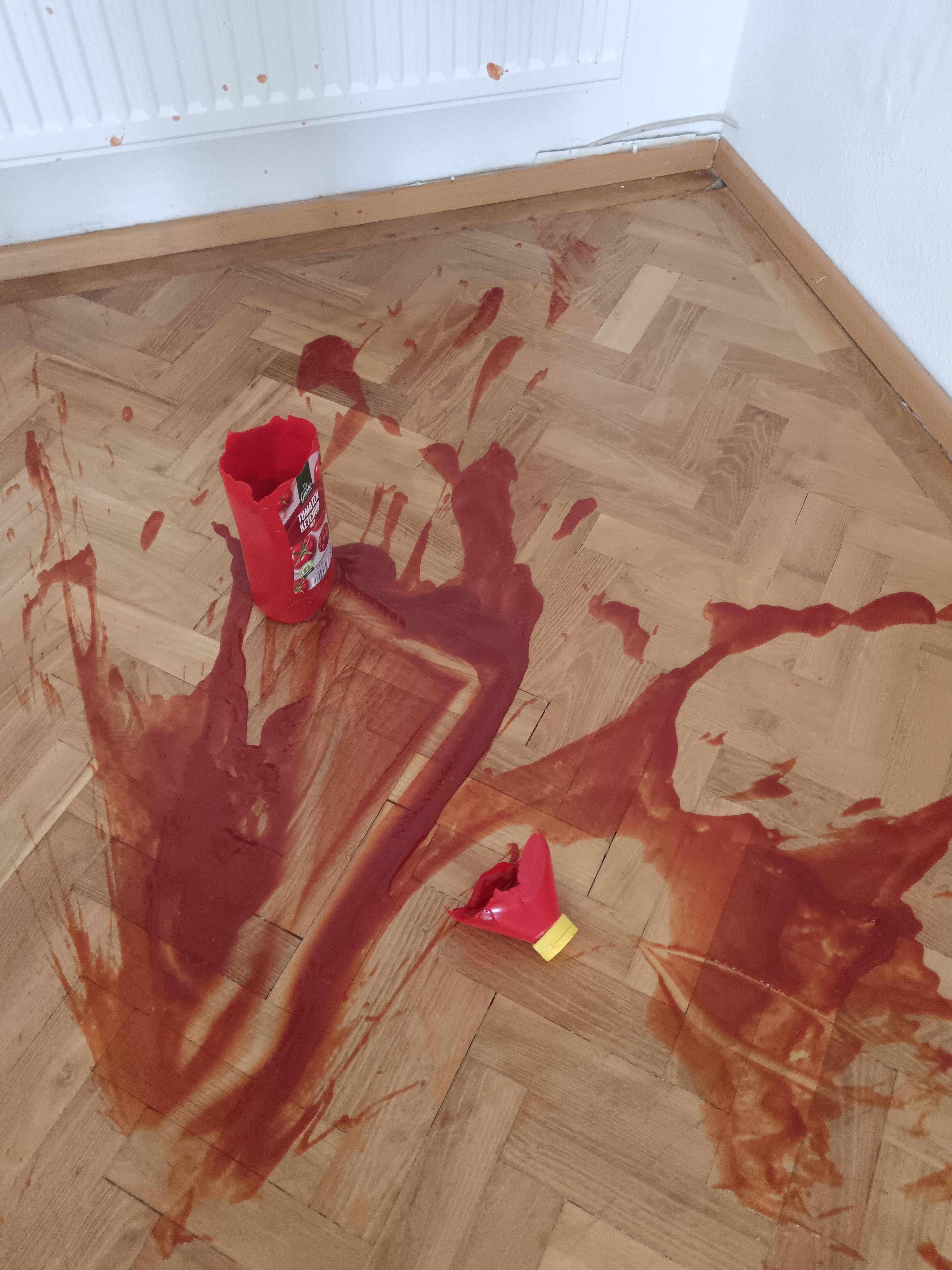 Wellthatsucks: I was doing tricks with the ketchup and dropped it.