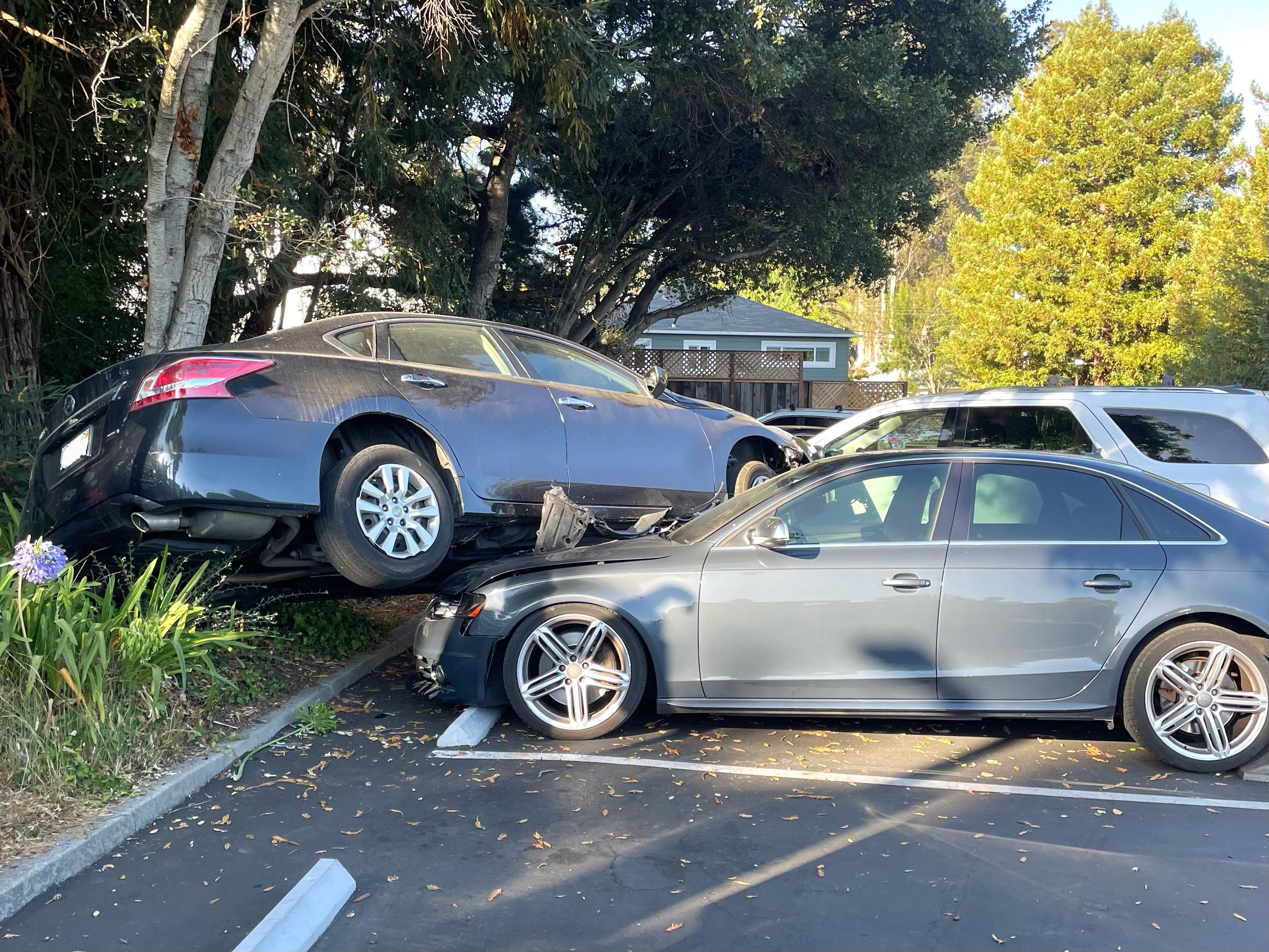 Wellthatsucks: Car landed on top of two parked cars
