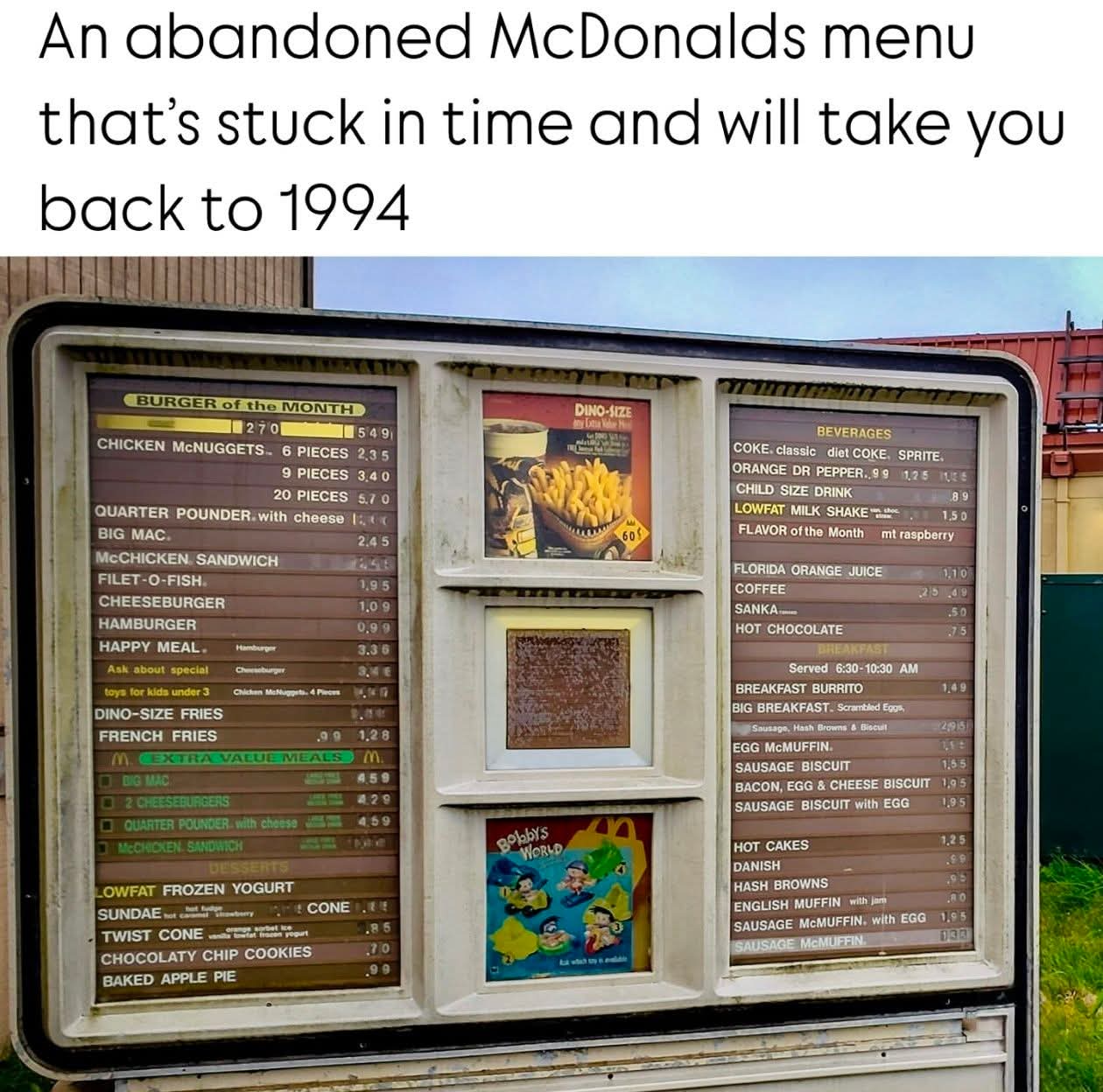 Old McDonald's menu