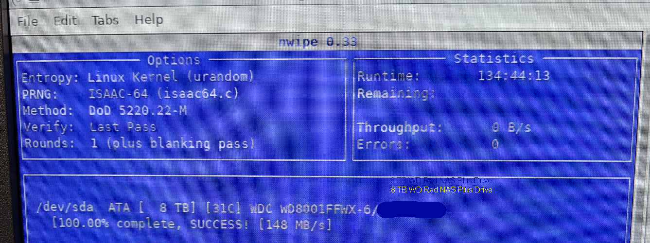 Sysadminhumor: 8TB wipe, ~135 hours, i5 4th gen PC, gparted/nwipe